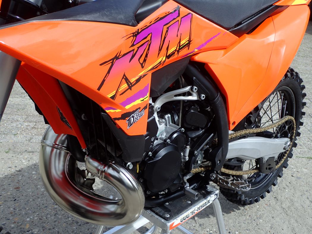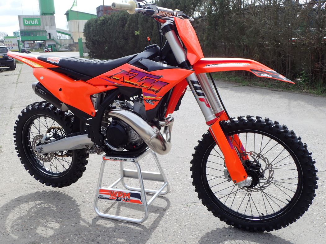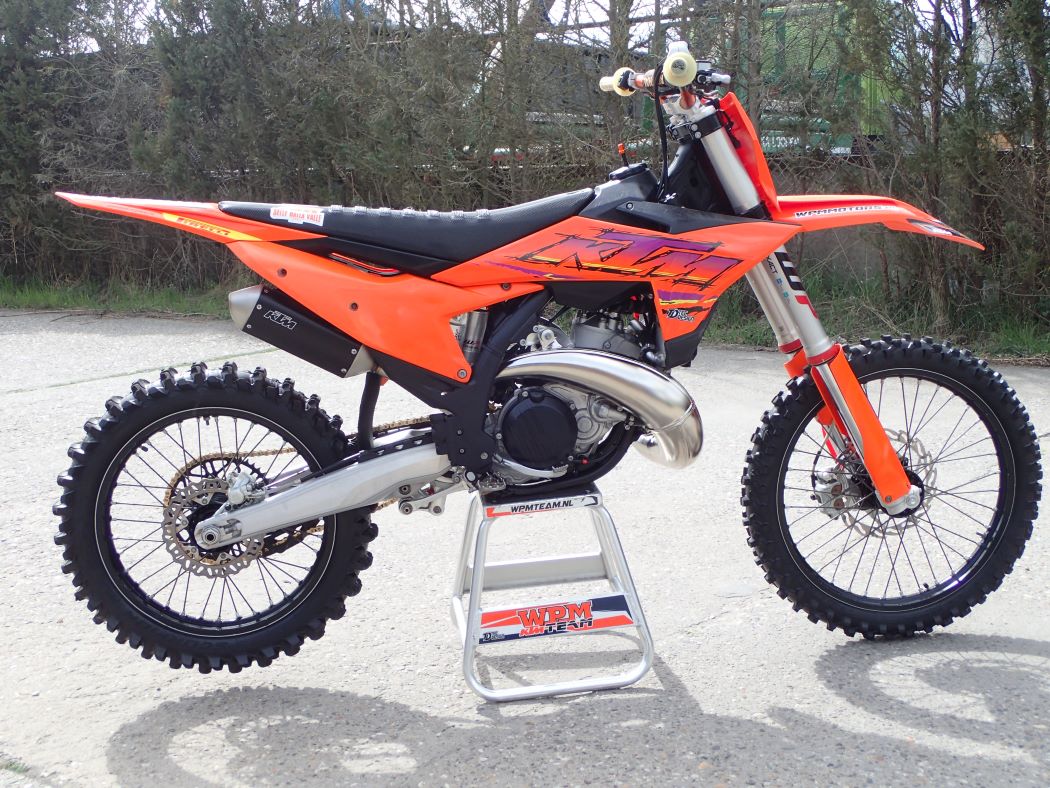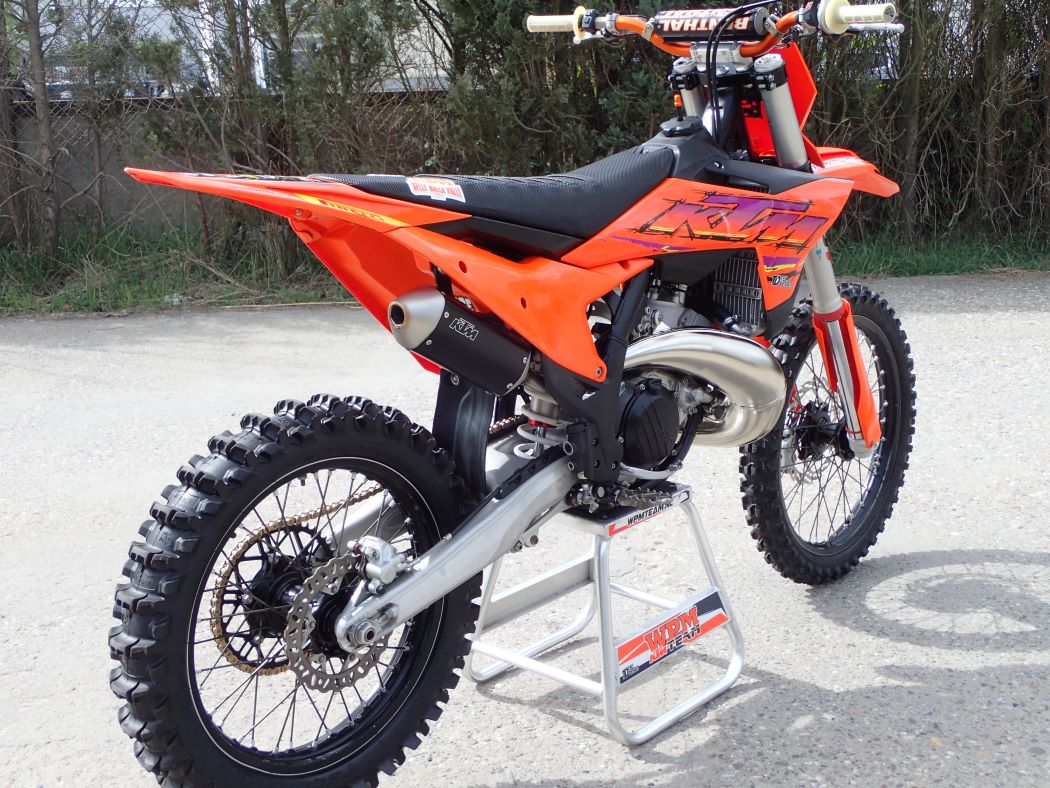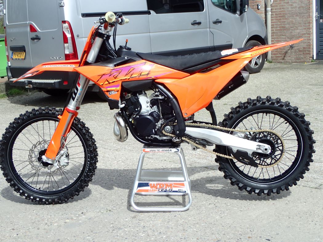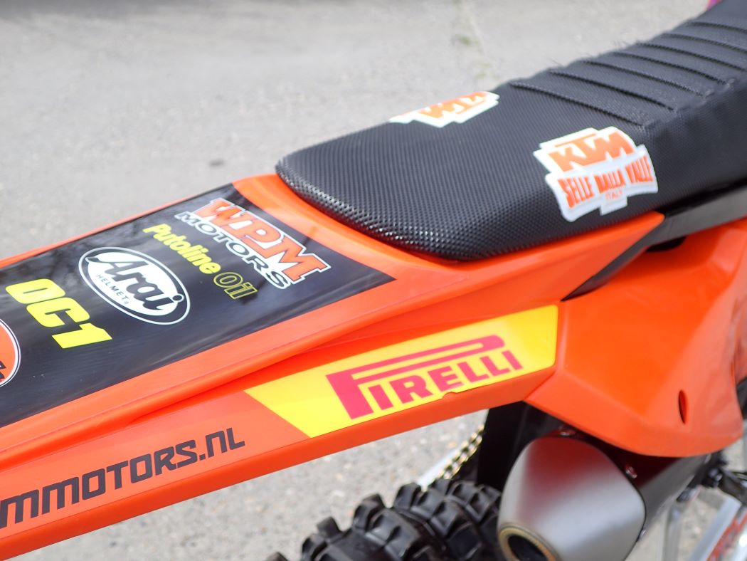 Super netjes, maar ook technisch perfect onderhouden, zuiger zo’n 8 draaiuren, schoepenband, nieuwe uitlaat + demper ( de HGS set is op zijn nieuwe 250 gemonteerd…. ) map switch voor verschillende vermogens afgifte, traction control start assistant, stoere stickerset, Renthal twinwall en renthal lock-on grips, Sella valle grip buddy, al met al niet alleen een mooie, maar ook een goede en zeer snelle 250 cc tweetakt, met electric start en injectie..