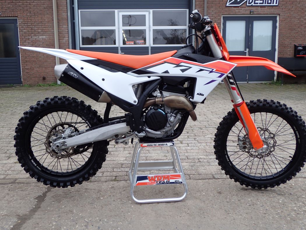 Het betreft de training/reserve motor van onze jonge Team rijder Maik Verhoef, top onderhouden met alleen OEM parts, plastics splinter nieuw, slijtage delen nog in top staat, kortom het lijkt en loopt ook als zodanig, een nieuwe motor… de 250 SX-F is bewezen de beste in zijn klasse…. de kop is er af en het lijkt of je een nieuwe aan hebt geschaft win/win ( nieuwprijs €11.435.-.)