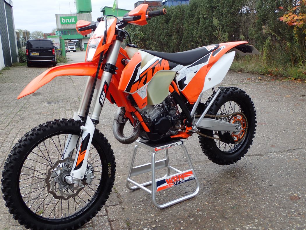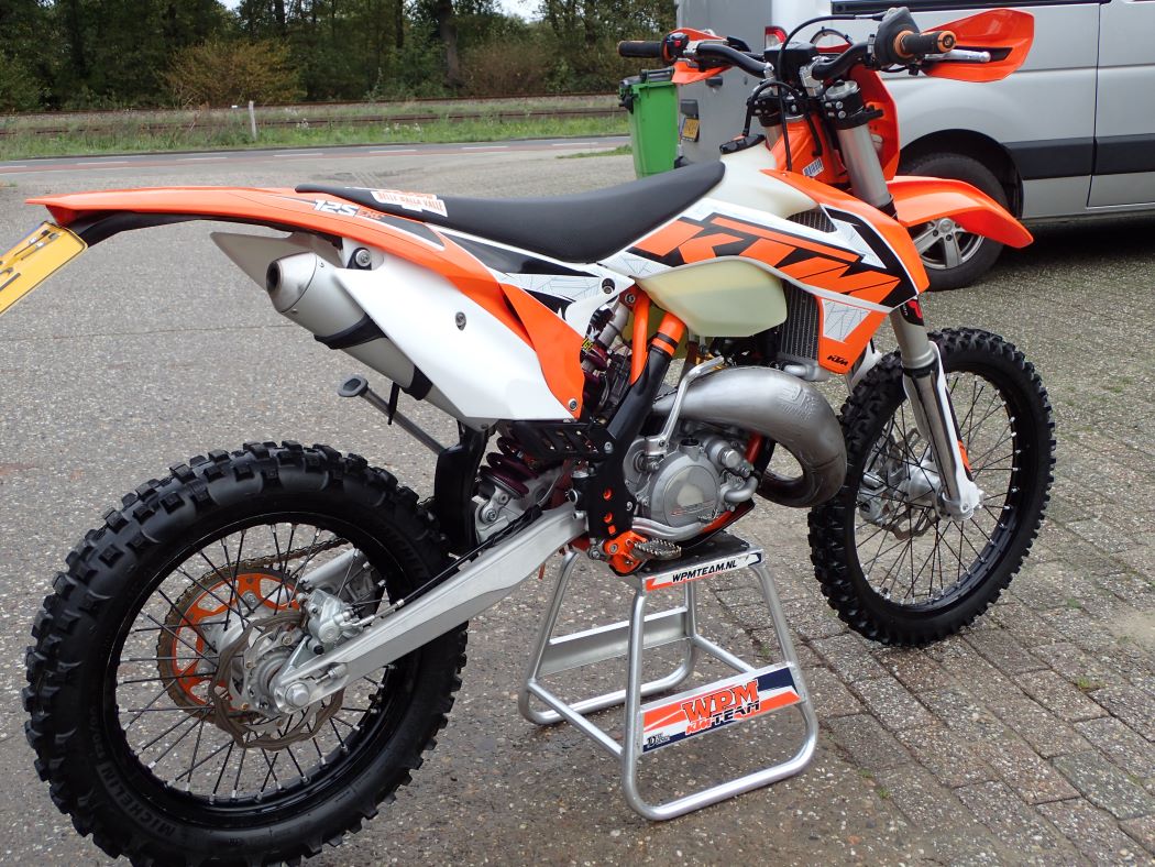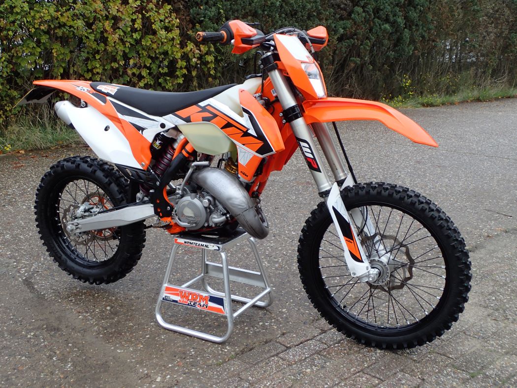 Een hele mooie kans voor iemand met A-1 rijbewijs !!! de 2016 is de laatste productie geweest bij KTM van dit schitterende model de 125cc, de opstapklasse voor je jonge mannen, maar door de rijbewijs regels, is dit de mogelijkheid voor de instapper die nog jong is en door het A-1 rijbewijs alleen 125 mag rijden… hier kun je de officiële enduro wedstrijden mee rijden !!! En de motor is 3 draaiuren geleden van een nieuwe zuiger voor zien ( en dat hoor je meteen als je hem aan trapt ,…loopt als een nieuwe ! ) HGS uitlaat in combinatie met een VHM kop voor wat extra pk’s, skidplate onder frame voor extra protectie en de vering is onder handen genomen door Reiger Suspension ! Het betreft een uniek model omdat ze er bijna niet zijn, en ze veel worden gezocht omdat er weinig beschikbaar is voor de A-1 rijbewijs mannen of vrouwen !! Pak je kans want weg is weg !!