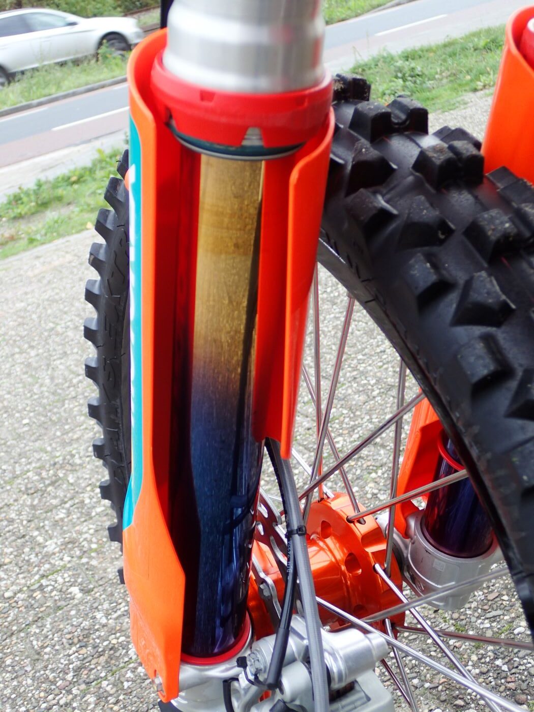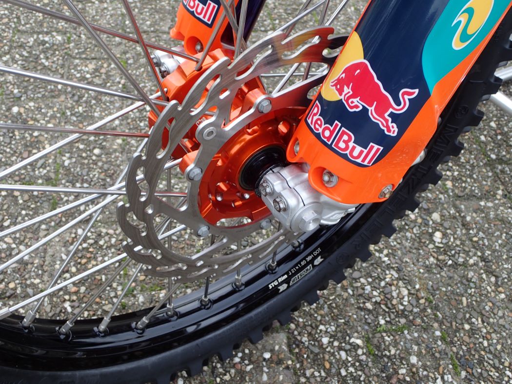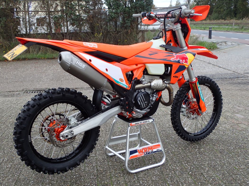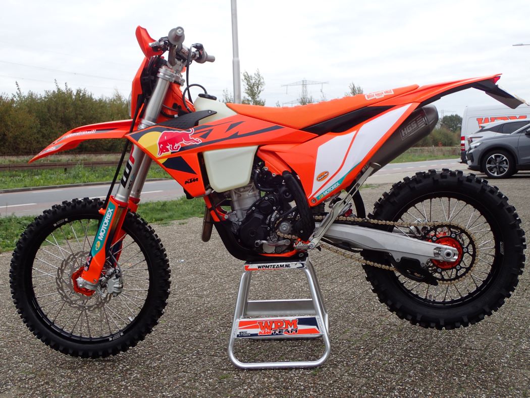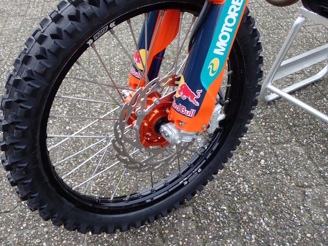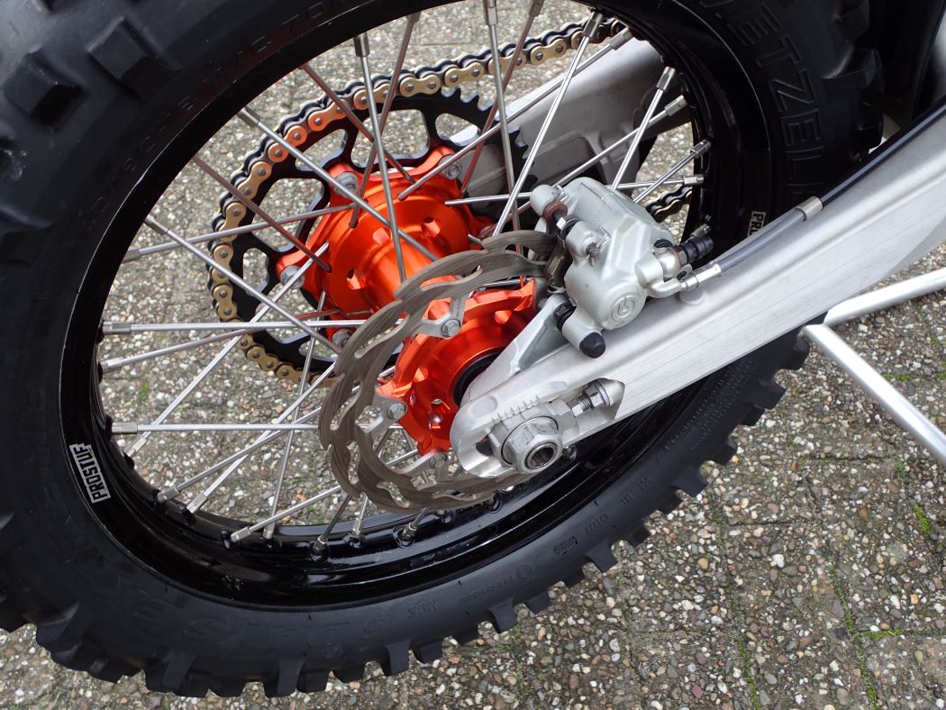 Een dikke wow factor en…. vol opties, zoals : WP Factory cartridge in voorvork, gecoate binnen poten voor optimale geleiding , complete HGS uitlaat set, bib moussen, brede voetsteunen (titanium), Renthal twinwall stuur, ketting en tandwielen nieuw !! en door ons in oktober een nieuwe zuiger er in gezet ( preventief ) ….kortom als je praat over ready to race dan is deze er helemaal klaar voor !! nieuwprijs € 14.899.– !!